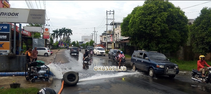 Lantaran, drainase di bawah jalan nasional itu diduga jadi pemicu banjir di kawasan KUA Baturaja Timur.