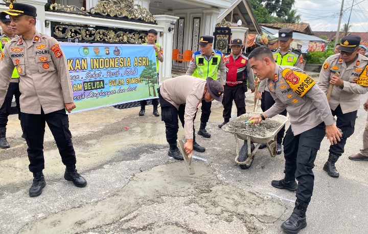 Gerakan ASRI Program Belida Polda Sumsel, Kapolres Turun Tangan Tambal Jalan Berlobang