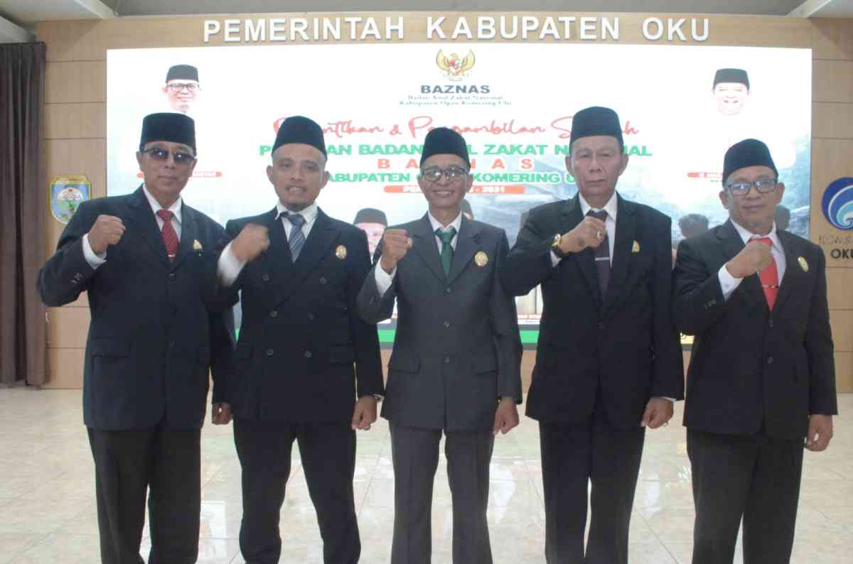 Pimpinan Baznas OKU yang dilantik dan diambil sumpah yakni, Ketua Baznas OKU : Imam Nuryadin S.H.I, Wakil Ketua I KH Agus Mutamsir LC MA, Wakil Ketua II Darman Syafe’i MSi, Wakil ketua III H Den Hamid SPdi, Wakil Ketua IV Drs Firdaus yang terpilih oleh tim penjaring belum lama ini.