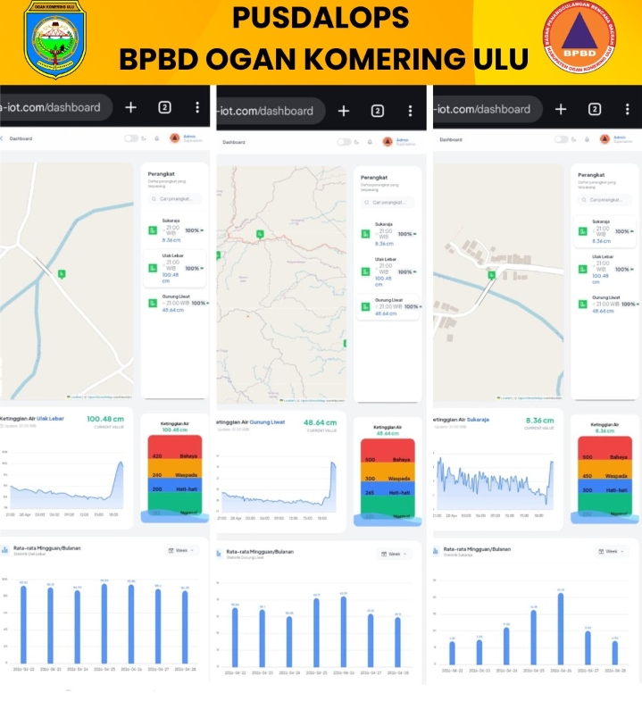 Meski ketinggian banjir berangsur surut, seiring hujan yang mereda pada malam ini, namun BPBD OKU melaporkan ketinggian permukaan air sungai Ogan yang terpantau dari alat pemantau ketinggian air (water gauge).