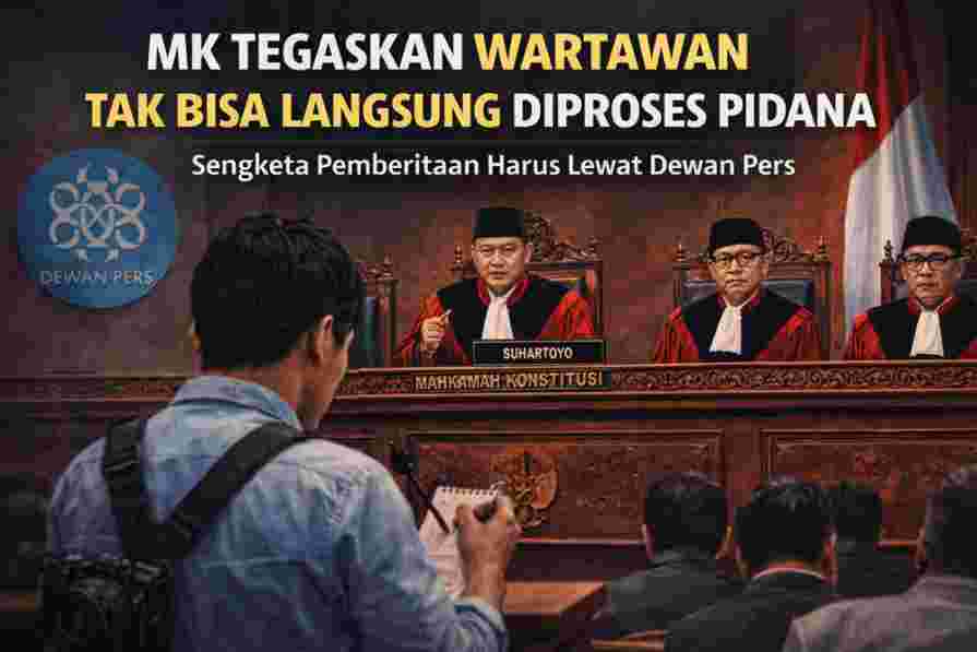 JAKARTA — Mahkamah Konstitusi (MK) menegaskan bahwa wartawan tidak dapat langsung dijerat pidana maupun digugat secara perdata atas karya jurnalistik yang dihasilkan. Penegasan ini tertuang dalam putusan uji materiil Undang-Undang Pers yang diajukan Ikatan Wartawan Hukum (Iwakum).